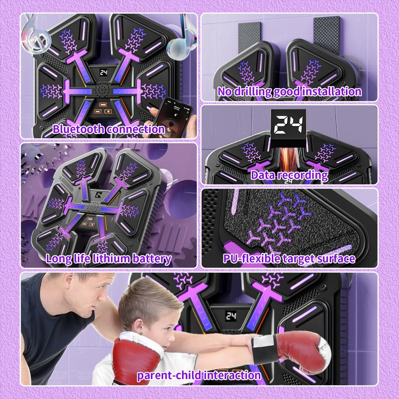 - [High Quality] The target surface of the music box machine uses high-quality PU+ABS as raw material, which is softer, quieter and more shockproof. It can reduce vibration on the wall and disturb others less. Boxing gloves are included to protect your hands during training.