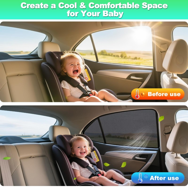 - Ultimate Privacy for Rear Passengers: Whether you're nursing, napping, or changing clothes, these baby window shades for car create a private, shaded space away from outside view. Perfect for family outings, camping, or daily commuting