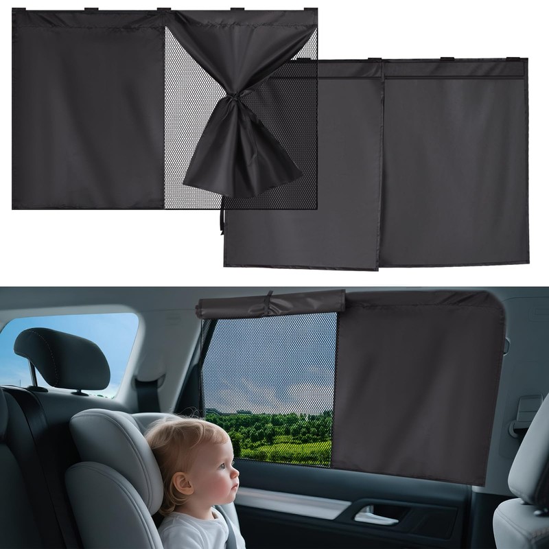 - Car shades for Back Windows Baby: The car window shade features a double-layer design-blackout cloth + breathable mesh-blocking 99% of UV rays, sun glare, and heat. It offers privacy and protection, especially for babies and kids, during long drives. Ideal as baby window shades for car to keep your little ones safe and comfortable