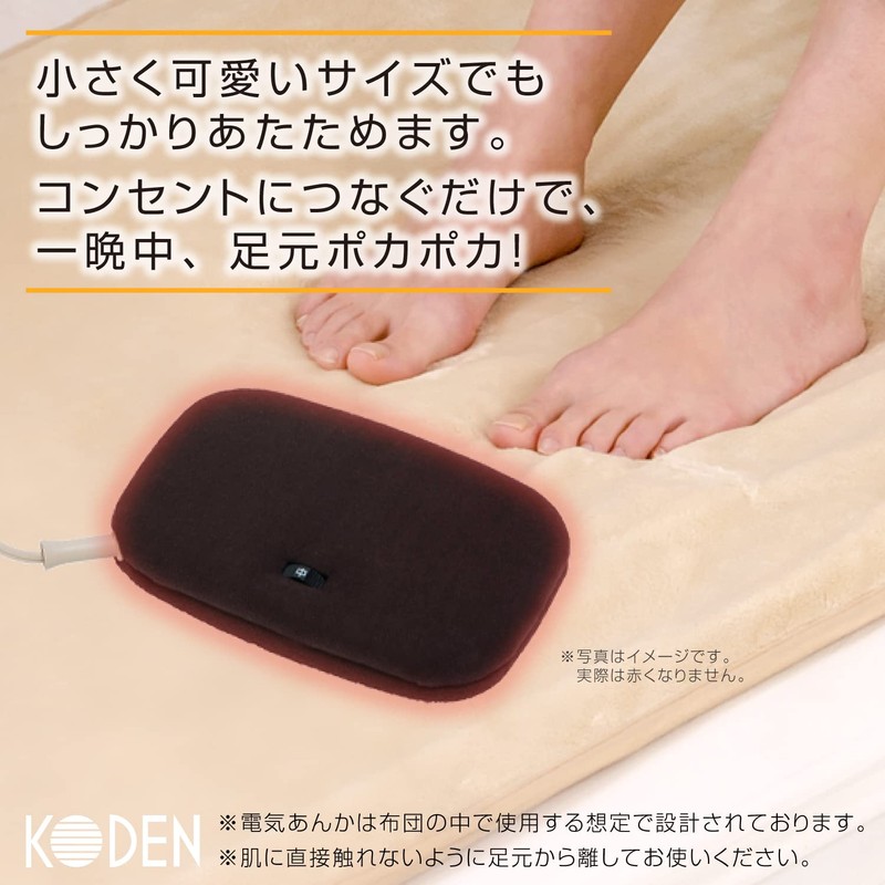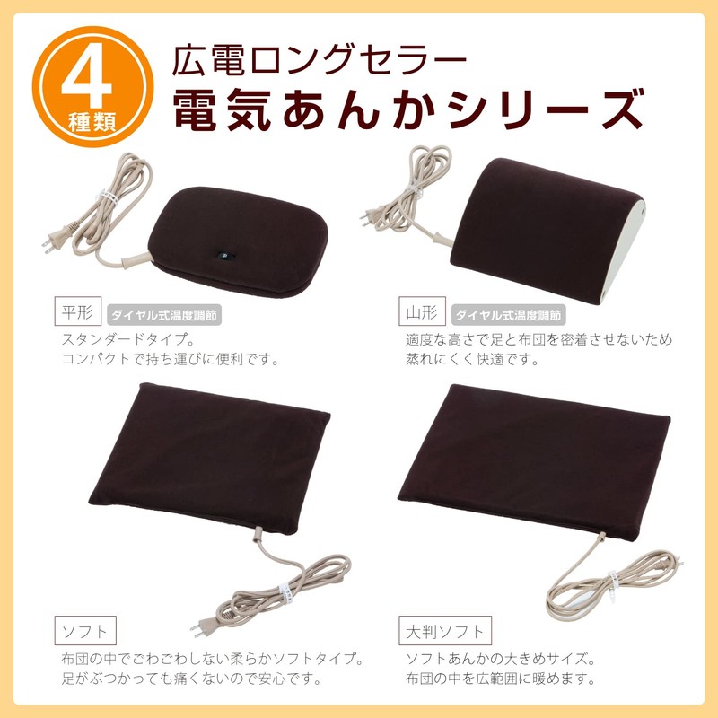 - (Traditional Standard Style Flat Type) When it comes to electric anka, the flat type is a standard shape. You can simply plug it into an electrical charger to warm your feet in the futon. The flat type has a compact size of about 9.1 inches (23 cm) wide
