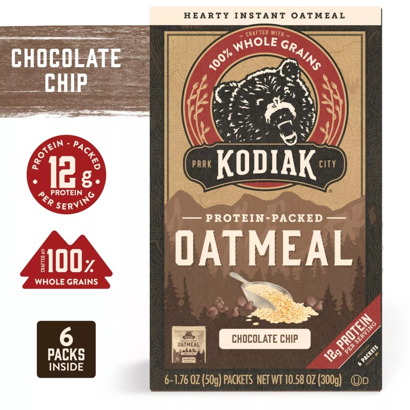 - Contains - (6) boxes of Kodiak Cakes instant oatmeal bulk chocolate chip packets (36 total packets), 1.76oz each, bulk oatmeal a great source of B vitamins and antioxidants
