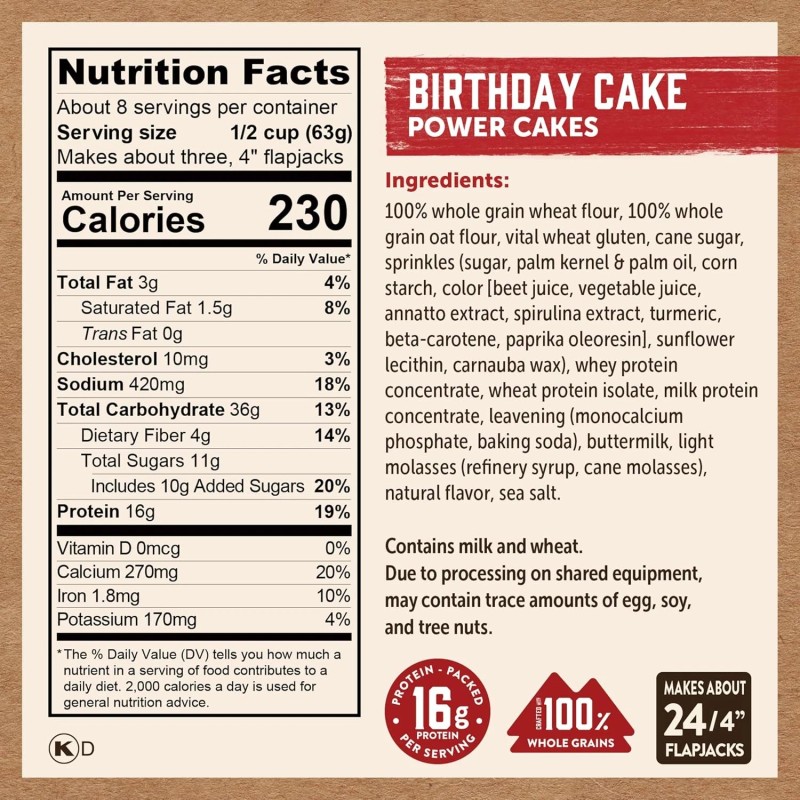 - Crafted with hearty 100% whole grains - pancake birthday cake mix with a great source of B vitamins and antioxidants, zero artificial preservatives