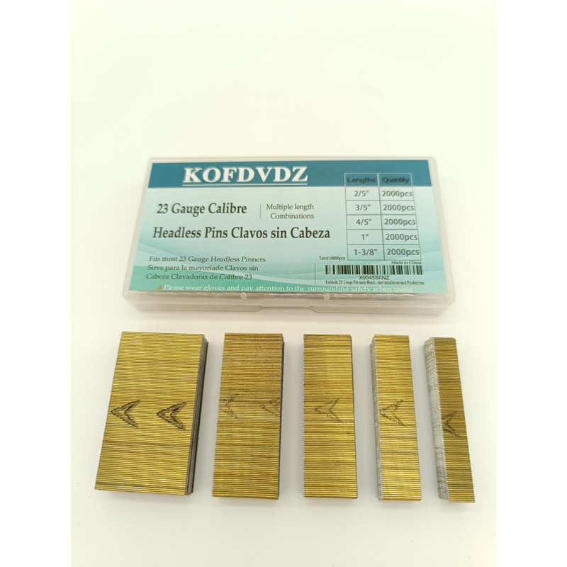 Kofdvdz 23 Gauge Pin nails Headless Pinner nails 10000 Pieces 5 sizes2/5",3/5 ",4/5 ",1 ",1-3/8" 0often used in a variety of Wooden, Plastic panels, Finished Cabinet installation and Production