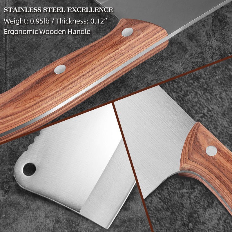 - Multipurpose Cutting Solution: Ideal for a variety of kitchen tasks, this cleaver knife excels at disjointing cuts, carving thick meats, and handling heavy ingredients. It's also perfect for daily chopping, shredding, slicing, deboning, and cutting of meat, vegetables, and fruits