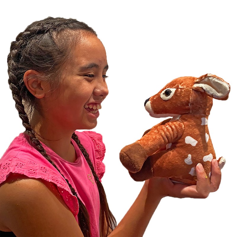 Kögler 75994 - Labertier Fawn Flöckchen, approx. 18 cm tall, according to plush toy with playback function, babbles everything witty and moves
