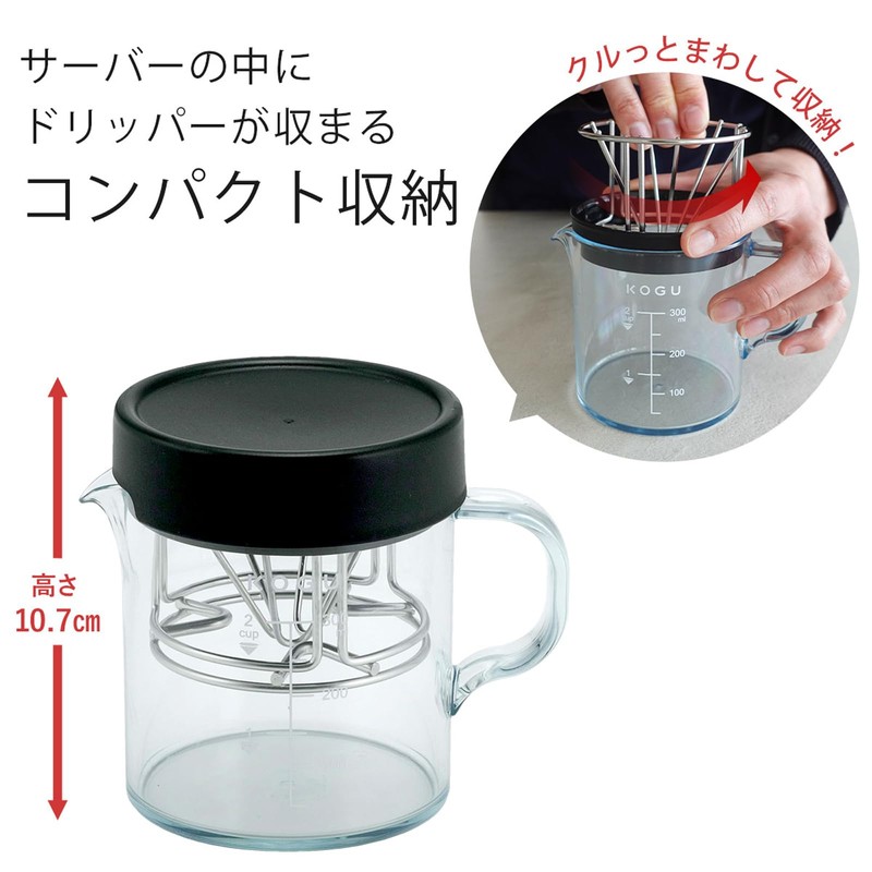 KOGU 46228 Shimomura Sales Compact Server & Dripper Set, Made in Japan, Dishwasher Safe, Compact Storage, Convenient to Carry, Unbreakable, Lightweight, Includes Lid, Scale Included, 10.1 fl oz (300