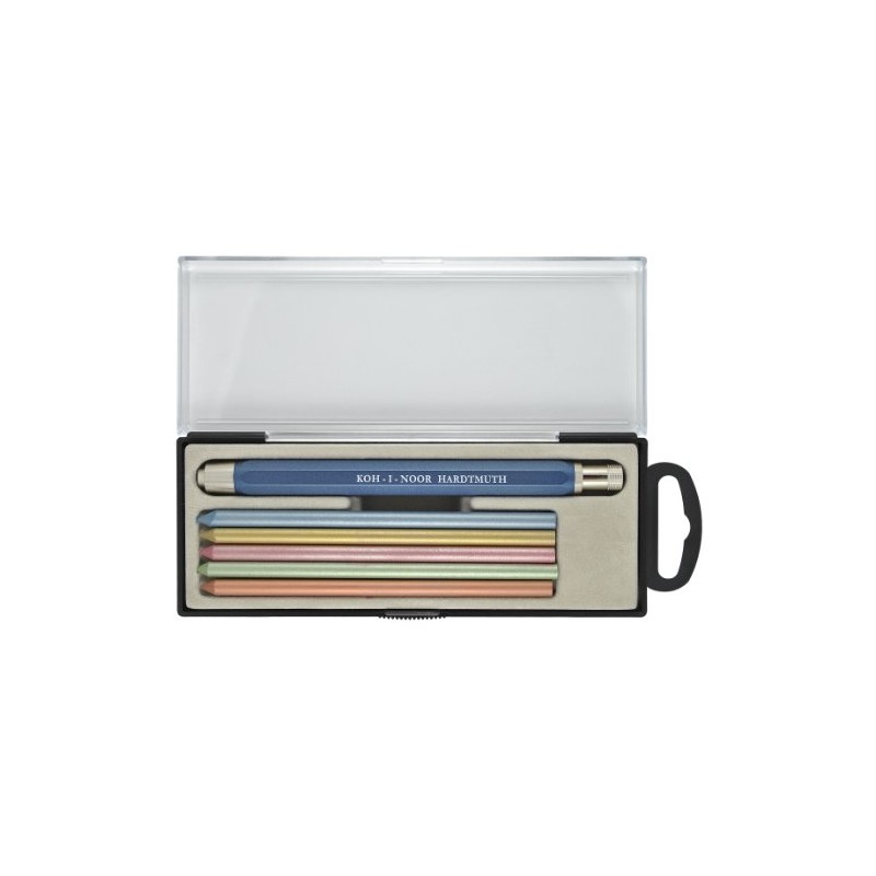 Koh-i-noor Set of 5340 Blue Metal Lead Holder with Sharpener + 6 Metallic Leads.
