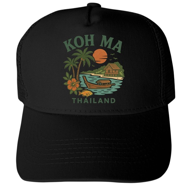 KOH Ma Thailand Keepsakes Black Unisex Mesh Back Trucker Hat with Adjustable Snapback