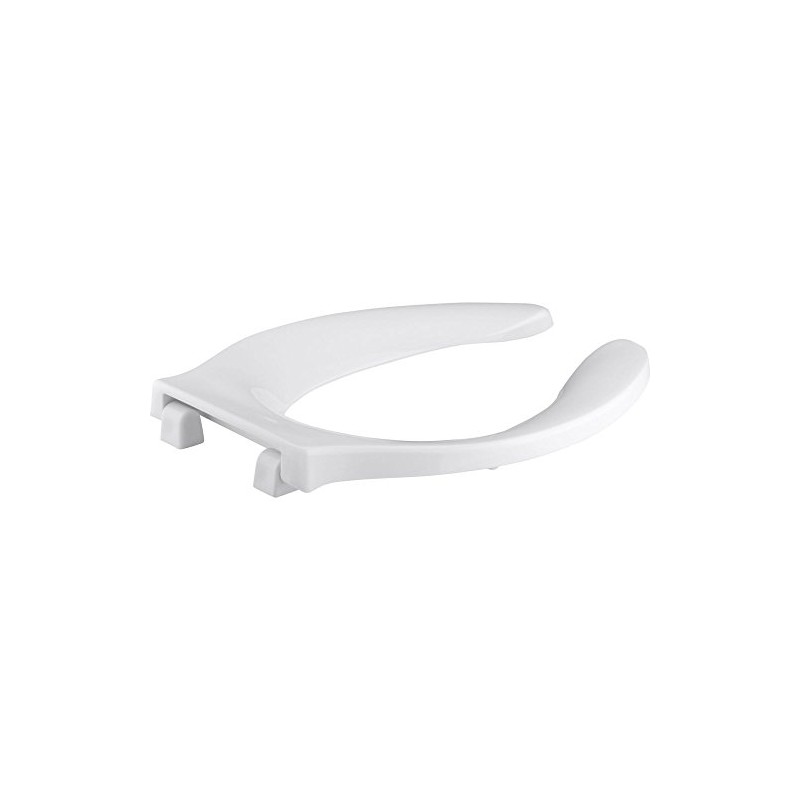 Solid polypropylene plastic open front ergonomic contour adds additional comfort stainless steel hinge arms and hardware heavy duty without cover check hinge stops seat from leaning back and applying pressure on tank/flushometer.