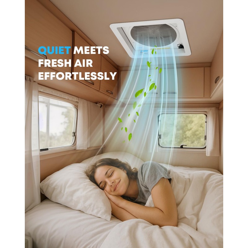 - SUPER QUIET & EFFICIENT: RV bathroom vent fan features 10 adjustable speeds and operates with an ultra-silent motor, producing a maximum noise level of 50dB. It consumes only 25W in high-power mode.