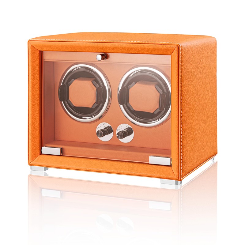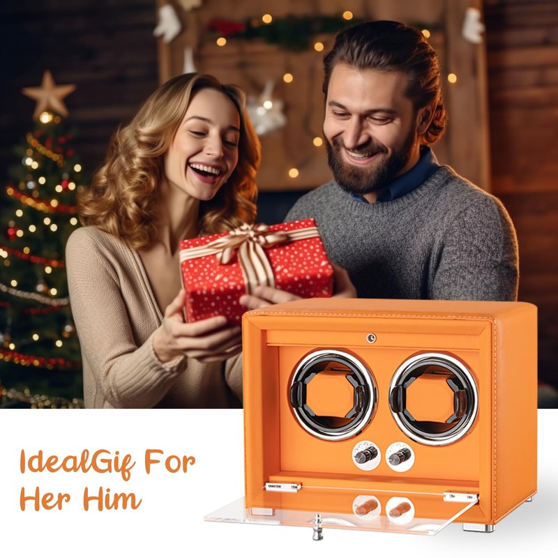 KOHUDIS Watch Winder for 2/4/6/9 Automatic Watches, high-end Leather Making, Super Quiet Mabuchi Motor, Two Power Modes, Built-in led Lights (Orange Watch Winders for 2 Watches)