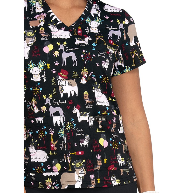 KOI Basics Leslie Women's 2-Pocket Stretch Print Top Fancy Party XS