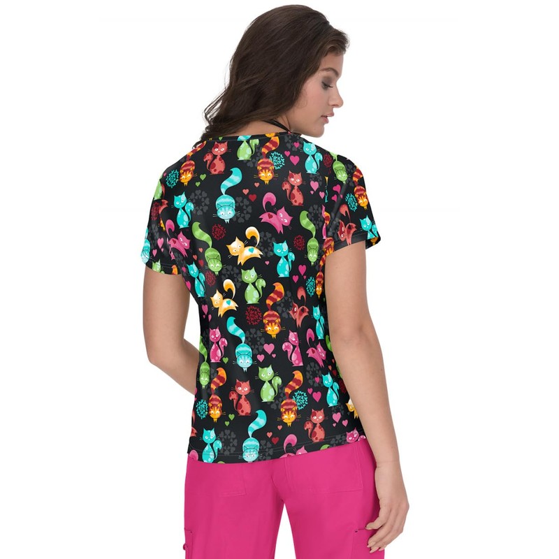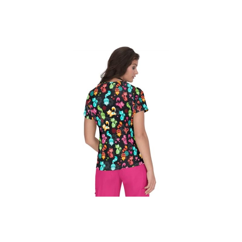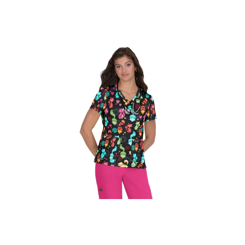 KOI Basics Leslie Women's 2-Pocket Stretch Print Top Pretty Kitty S