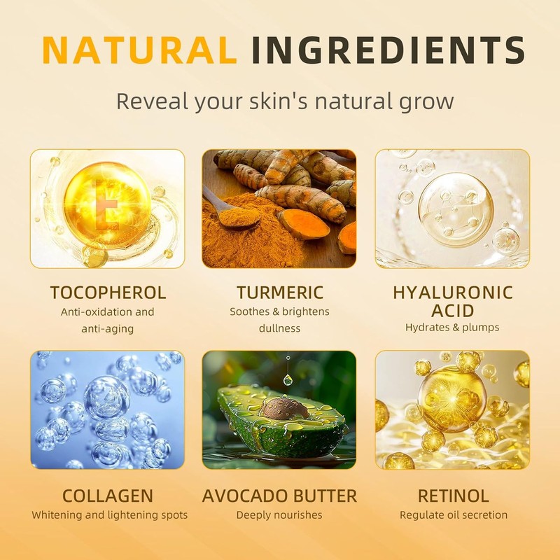 - 🧡 Cúrcuma: Un antioxidante natural que combate la inflamación y ayuda a aclarar la piel.