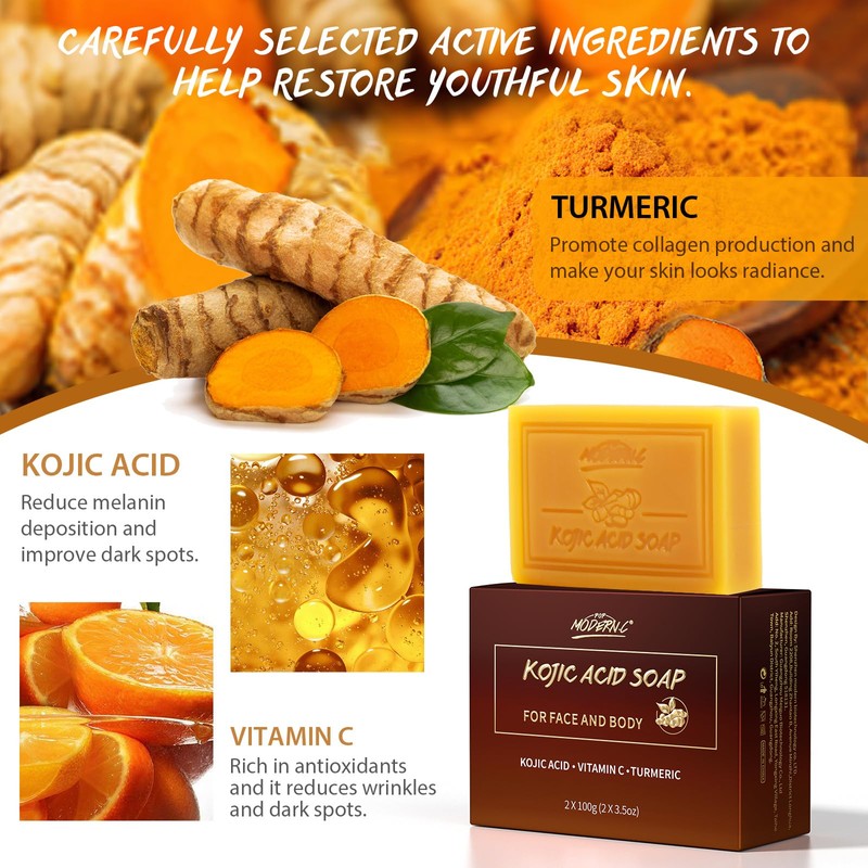 • CAREFULLY SELECTED FORMULA:Our kojic acid soap is carefully selected advanced formula contains a variety of effective ingredients. It can gently cleanse the skin and without causing any burden on the skin. Rich in kojic acid, turmeric and vitamins c, shea butter, olive oil, amino acids, salicylic acid, and hyaluronic acid and other ingredients.