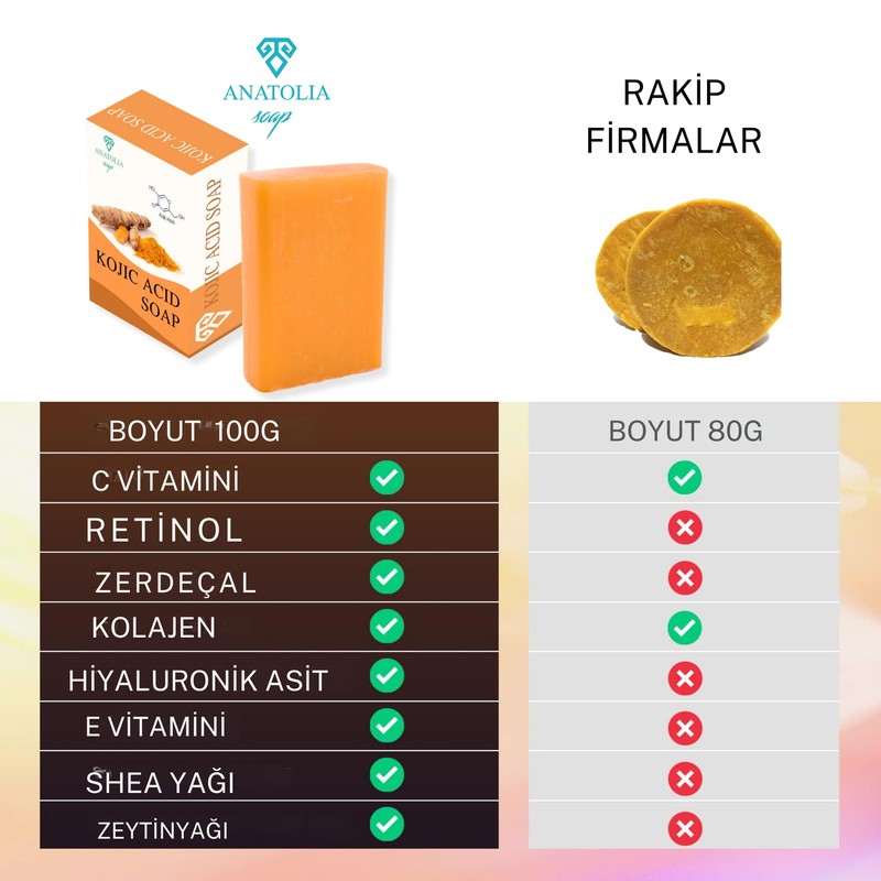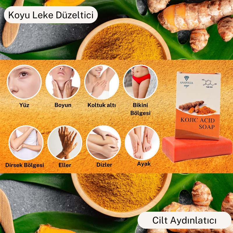 Kojik Asit Sabunu,Koyu Leke, Ölü Hücre, Kolajen, Sivilce, Güneş Lekesi, Zerdeçal, Retinol, C Vitamini, E Vitamini, Kadınlar ve Erkekler için Yüz Temizleyici.