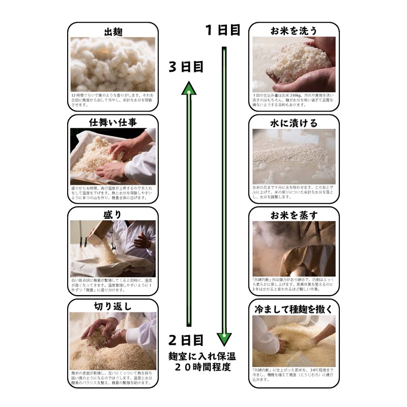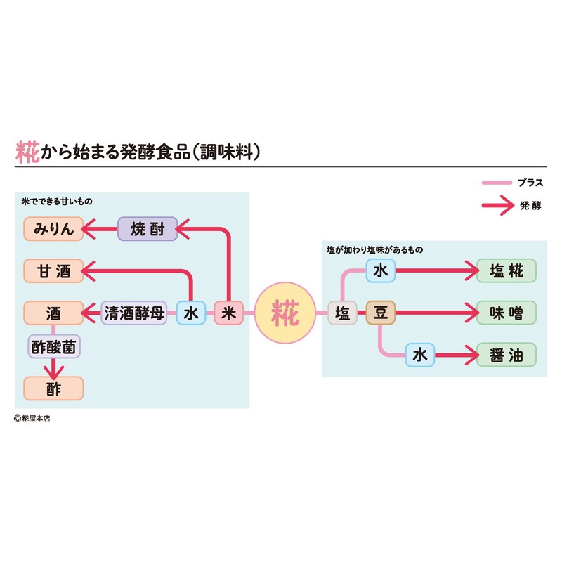 You can make condiments and processed goods from rice malt to sweet sake, salt malt, miso, koji natto etc.