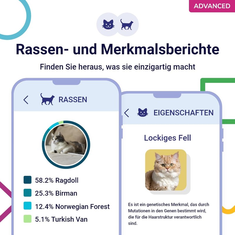 - DNA TEST FOR BREEDS, PHYSICAL CHARACTERISTICS AND HEALTH. You'll learn which breeds your cat belongs to, the breeds of its ancestors with a pedigree, and information about dozens of physical traits in addition to the breeds. After all, among dozens of illnesses, you will see if your cat is a carrier of them.