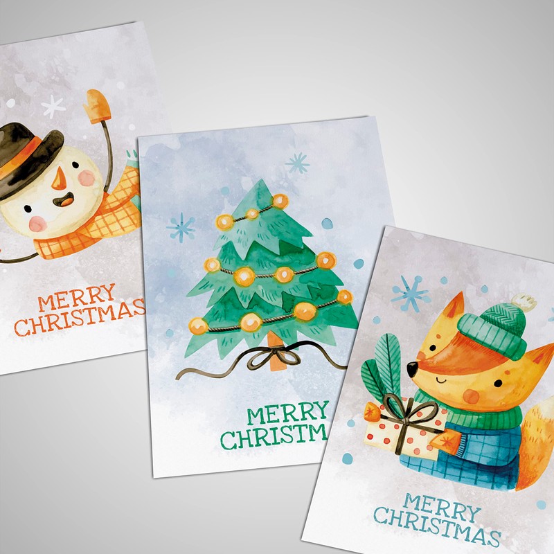 KOKO&LORA® Christmas greeting cards in cute watercolour design for young and old with fox and snowman