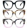 KoKoBin 3 Pack Oversized Reading Glasses for Women Blue Light Blocking Colored Stylish Frame +3.50