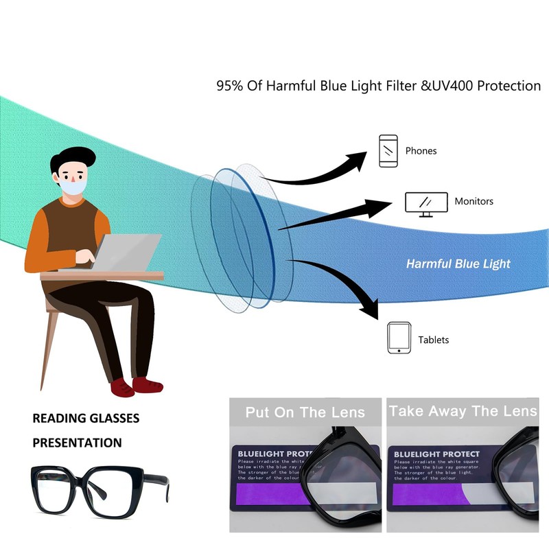 - đ”ăAnti-blue lightăAnti-blue glass can effectively block 90% of visible light with a wavelength between 415 and 455 nm. These glasses can protect your eyes from damage when using digital products, reduce glasses fatigue, and improve sleep.
