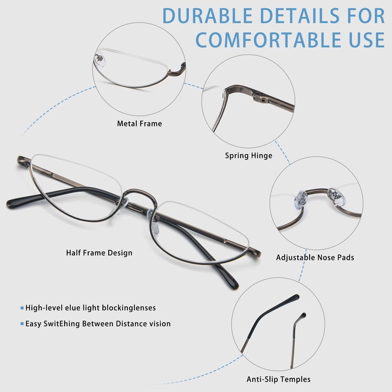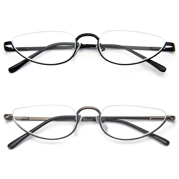 KoKoBin Half Reading Glasses for Men Women,Half Moon Metal Frame Lens Spring Hinge Readers, Black+Gunmetal 1.00