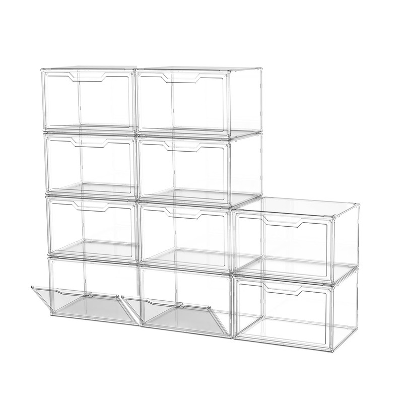 KOKOIN Magnetic Acrylic Clear Shoe Boxes – 360° Clear Plastic Stackable Sneaker Storage Box shoe Display Box Professional Grade Shoe Display Case, Shoe Organizer for Closet (10PC)