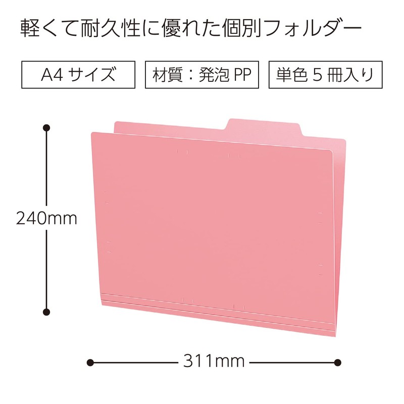 Kokuyo A4-IFH Standalone Folders (Color, Polypropylene, Set of 5) Lightweight and Durable Polypropylene, safety pink