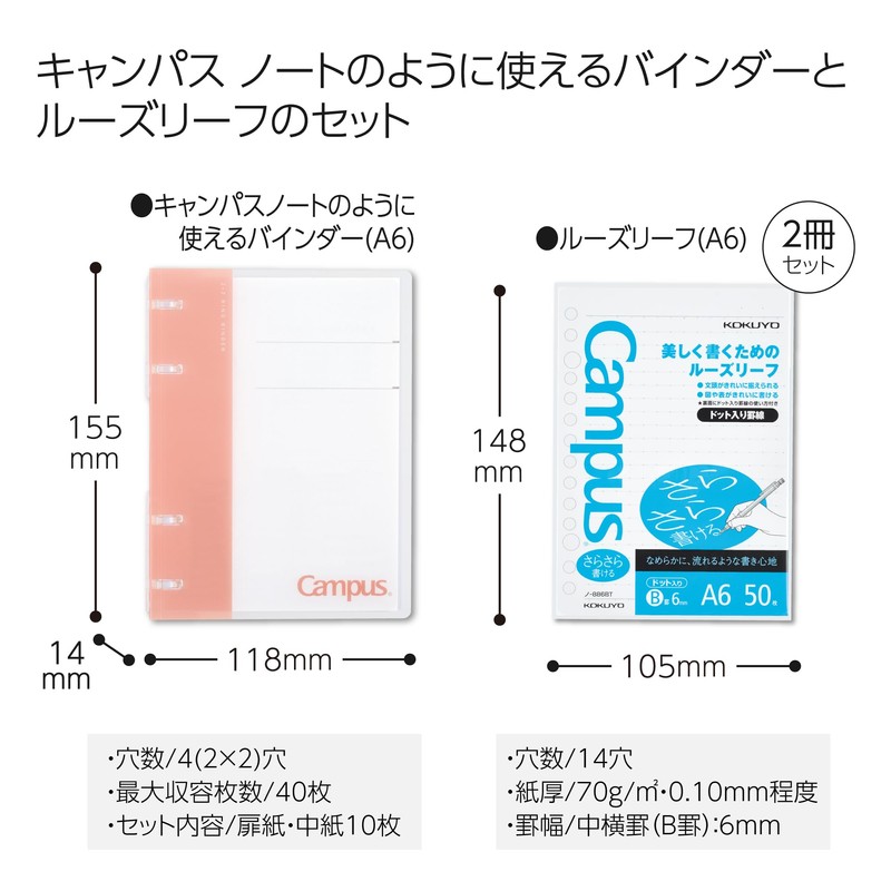 - A set of easy-to-use "A6 size binder" and "loose leaf" for a simple summary
