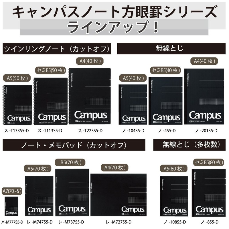 Kokuyo Campus notebook grid ruled Twin Ring A4 40 sheets scan -T223S5-D