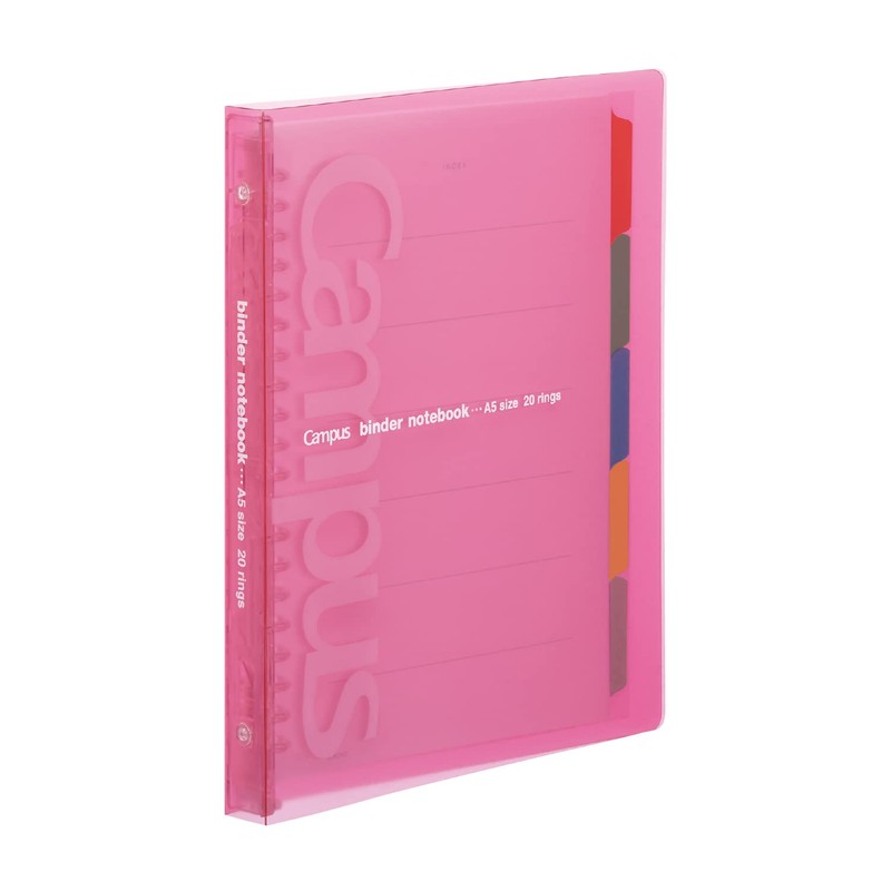 Kokuyo Campus Slim Binder Notebook, A5, 20 Holes, safety pink