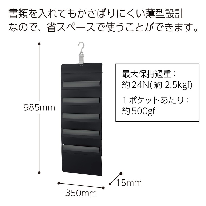 Kokuyo F-KPM50-2 Wall Pocket, Wall Pocket, Storage, Quick Access for Documents, 5 Pockets, Black