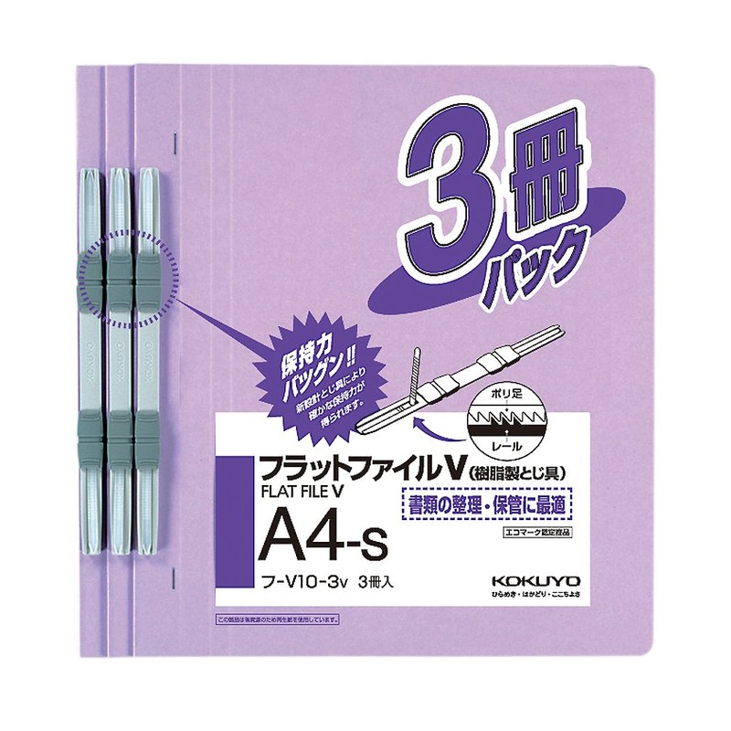 Kokuyo flat file Paper Cover Resin Binding Hardware 2 Hole A4 150 Sheets Accommodate Purple Flat – V10 – V