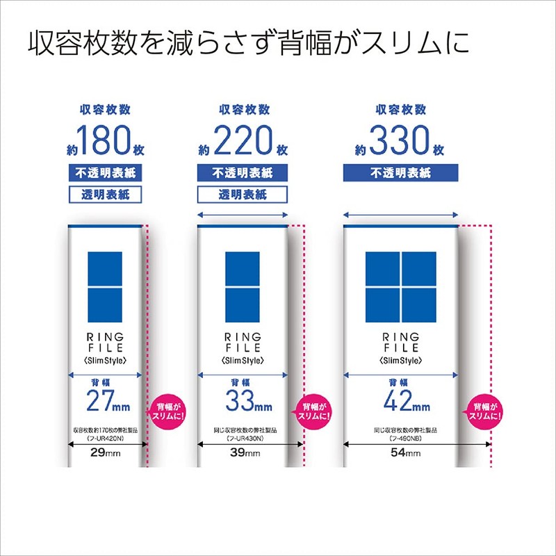 KOKUYO FU-URF420Y Ring Binder, Slim, 2 Rings, A4, Holds 180 Sheets, Yellow