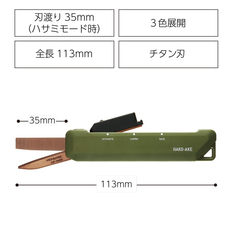 Kokuyo Hasa-T420DG Scissors Cutter, 2-Way Hakoake, Titanium Blade, Khaki