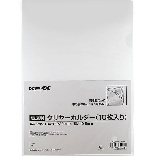 Kokuyo K2F-C750TX10 File Clear Holder K2 A4 10