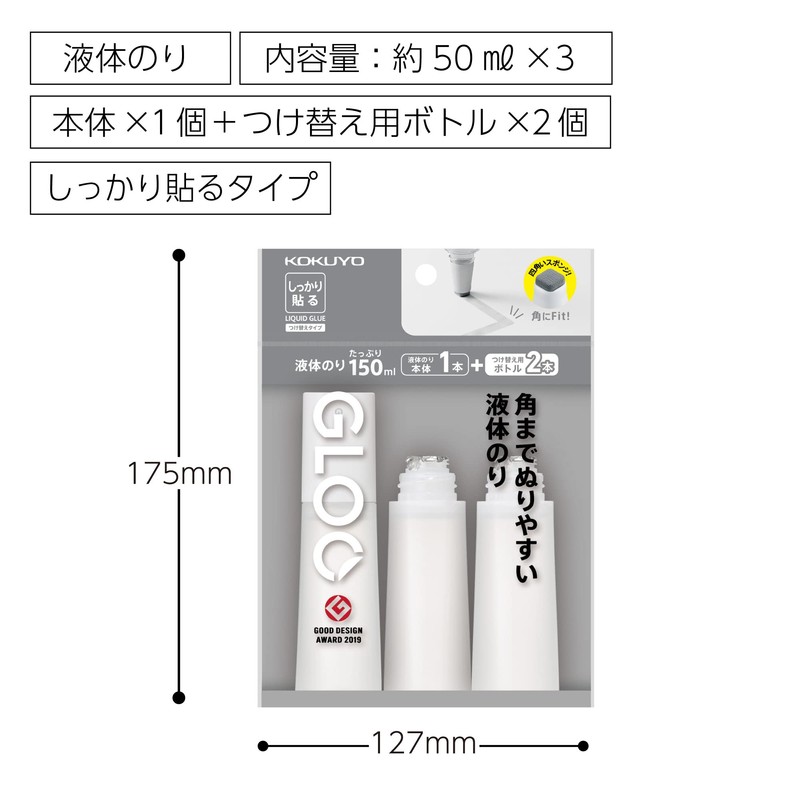 Kokuyo Liquid Glue, GLOO Firmly Sticking, 1 Main Unit + 2 Replacement Bottles TA-GM802-2R