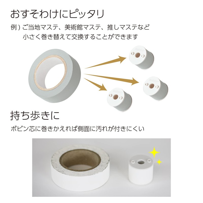 • Komaki, you can easily roll your masking tape into a small bobbin core