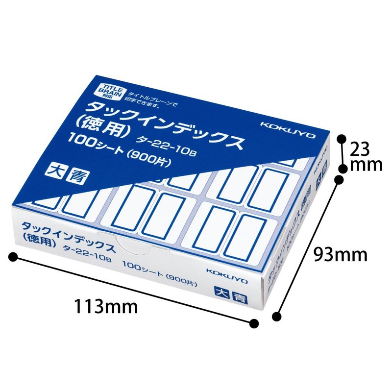 Kokuyo Tack Index Label, Value Item, Large, 9 Sheets x 100 Sheets, Blue, Ta-22-10B