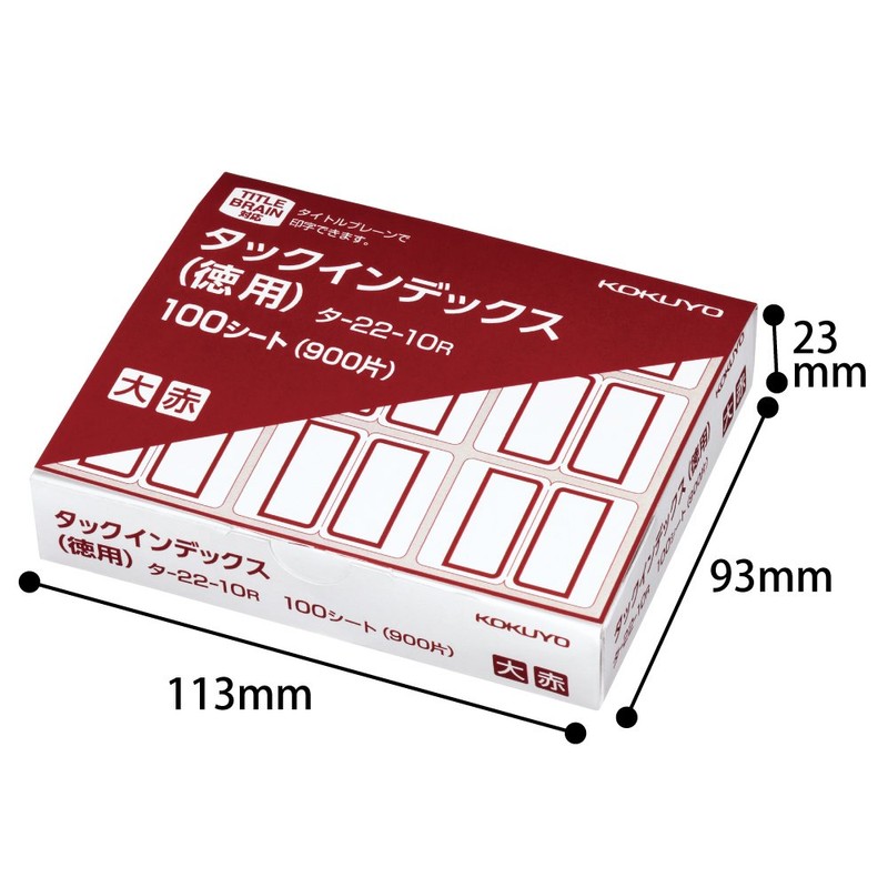 Kokuyo Tack Index Label, Value Item, Large, 9 Sheets x 100 Sheets, Red, Ta-22-10R
