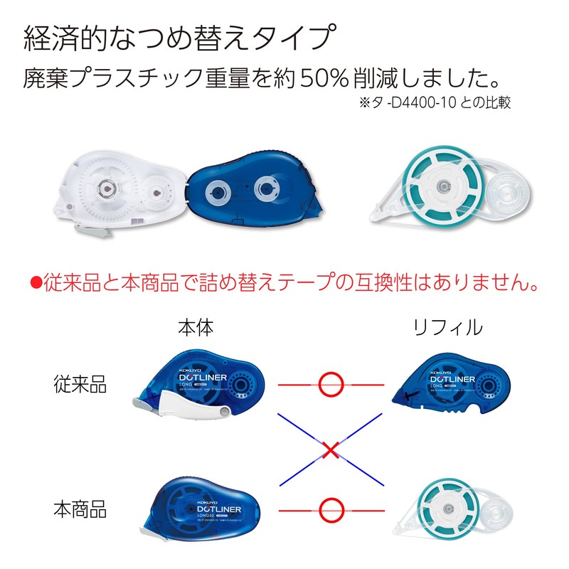 Kokuyo Tape-D4300-10X5 Dot Liner Long 50 Refill Tape Pack of 5