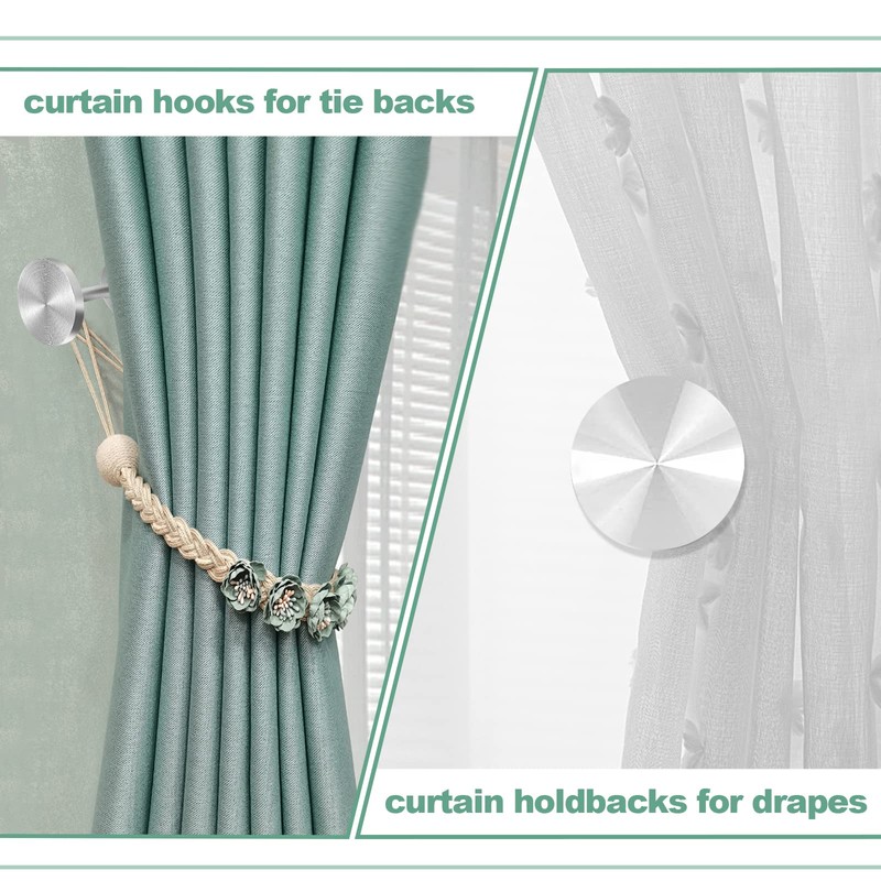 - Multiple Application - Can be used as curtain holdbacks for drapes, suitable for ordinary/heavy/sheer curtains; or as curtain holders for tassel tie backs to pull curtains back. More, curtain holdbacks wall mounted also can be as decorative wall hangers to hang picture frame,clothes, hats, scarves and stuff in everyday life.