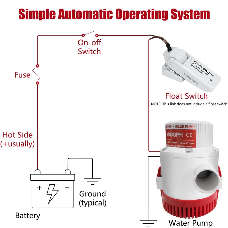 KOLERFLO 3700GPH Boat Bilge Pump,12V Submersible Bilge Pump with 1-1/2" Hose Outlet Plumbing Non Automatic for Marine, Boat, Yacht