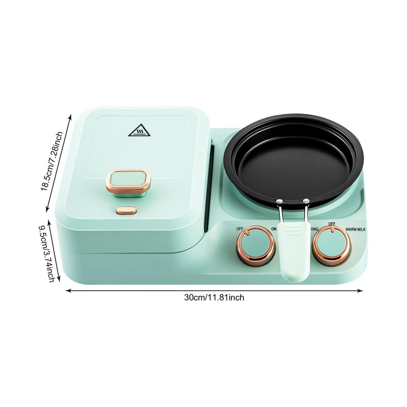 KOLHGNSE 3-in-1 Breakfast Station, Electric Sandwich Maker Frying Pan Boiling Pot Compact Non-Stick Breakfast Maker Small Kitchen RV Dorm (Mint Green)