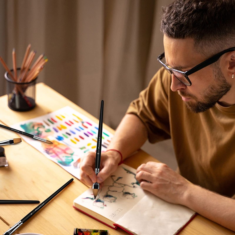 - Wide Application - This set paint brushes are excellent for watercolor, acrylics, inks, gouache, illustration, animation and rendering. For anyone who loves painting; Paintbrush set for professionals, hobby artists, beginners, adults, kids; Elegant design, excellent quality.