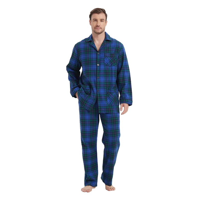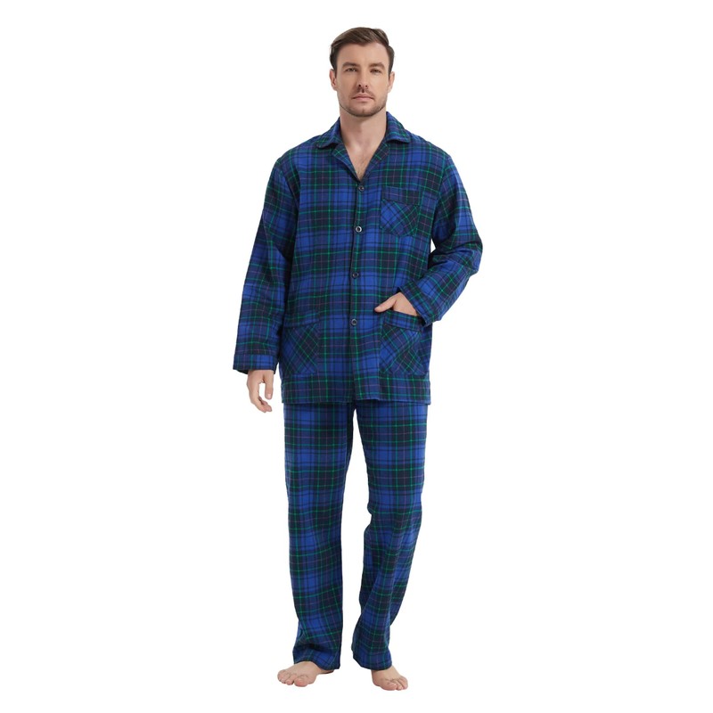 kolipajam Men's 100% Cotton Flannel Pajama Set Yarn Dyed Cozy Bottom with Pockets Drawstring waistband Winter PJs for Men