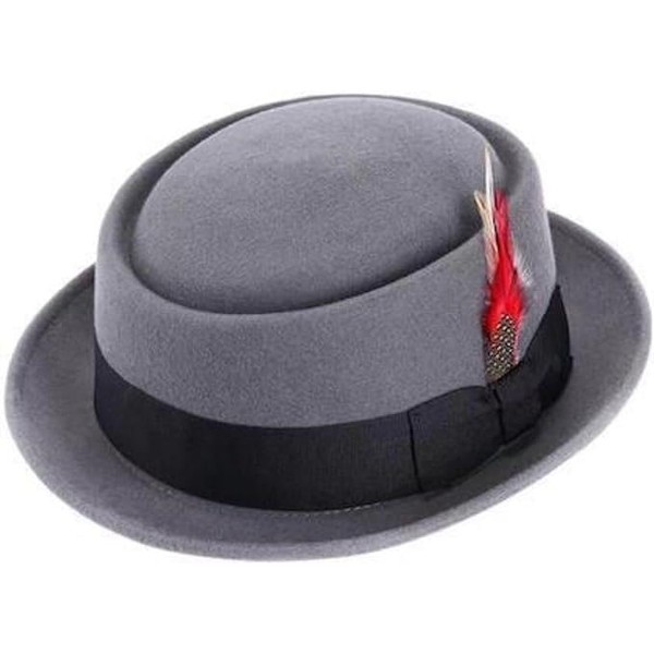 KOLLACHE Mens Pork Pie Wools Hats Crushable Felt Straw Summer Beach Feather Trilby Hats-Grey-S