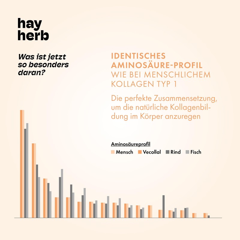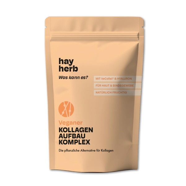 Kollagen Aufbau Komplex | 100% vegan - Pflanzliche Alternative zu herkömmlichem Kollagen Pulver | Monatspackung mit VeCollal® | Identische Bausteine wie bei menschlichem Kollagen Typ 1 | Hay Herb