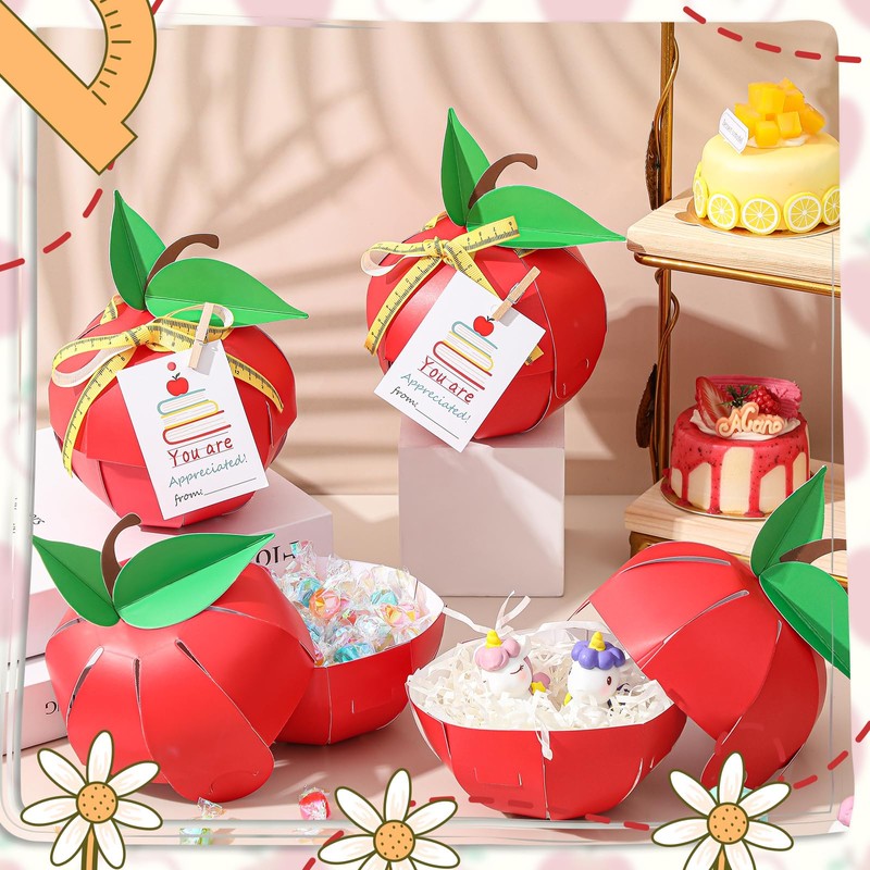 - Back to School Apple Container: not only are these apple containers good gifts for teachers, but they also serve as nice vessels for any school event, such as Teacher Appreciation Week, return gifts for back-to-school parties; These apple containers are not just gifts but memorable tokens of appreciation for teachers