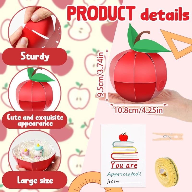 - Durable Material: our red apple containers are crafted from coated paper material, ensuring durability and strength; These containers are suitable for teachers, with a size of 4.25 x 3.74 inches, large enough to store candies or snacks; The quality material guarantees that the gift will be appreciated and cherished